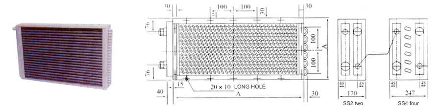 The finned tube is made of 416 × 1 mm red copper tube with 10 × 0.2 mm folded copper strip, which is in spiral shape. It has three different fin spacing: 3.2 mm-r, 4.2 mm-m and 6.5 mm-t, "R" type has a unique style, with small spacing and large heat dissipation area, which has a large heat dissipation capacity; "m" type has a large spacing, which has a small heat dissipation capacity and air resistance; "t" type has a large spacing, which is durable, easy to install and economical.